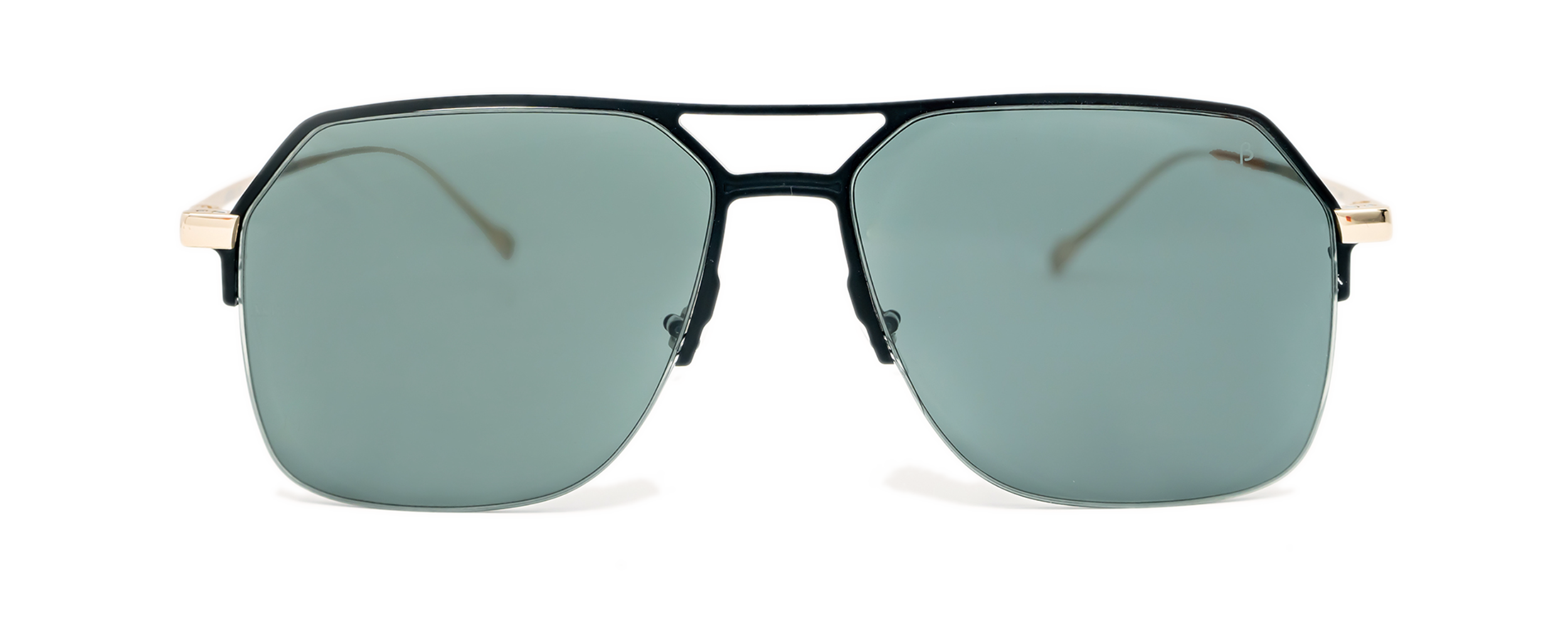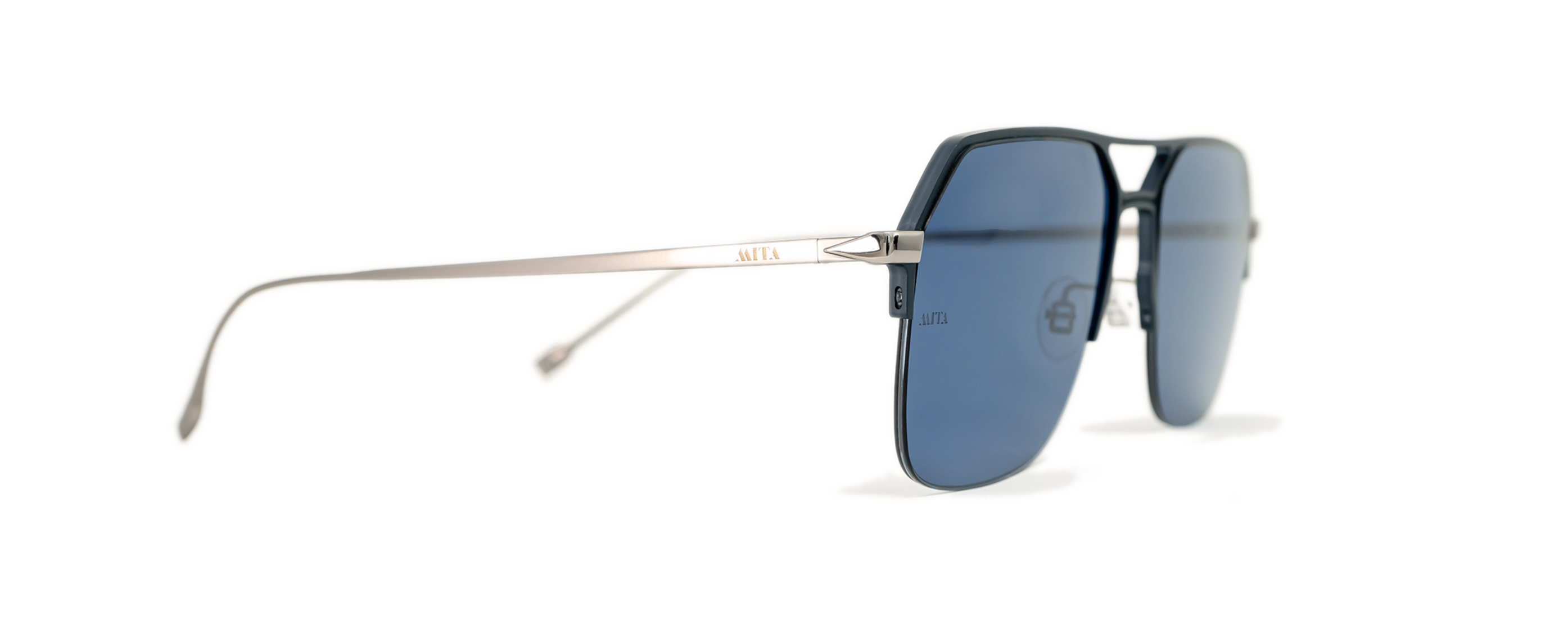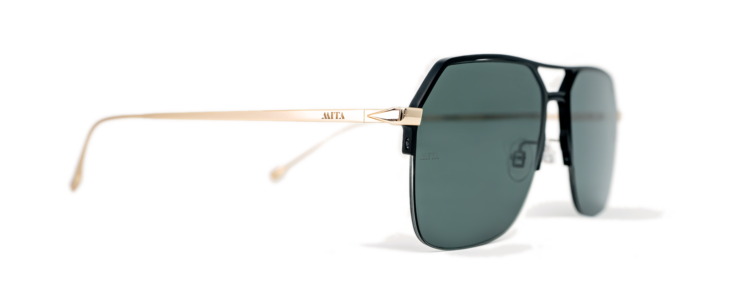 Stay stylish and comfortable with the Men's Aviator Sunglasses from MITA. Inspired by 70's oversized double bar navigators, these half rim metal sunglasses boast a semi-rimless construction for a modern touch. The iconic 'I' detail on the end pieces and sleek titanium temples add a touch of sophistication, while the weightless frames ensure comfort all day long.