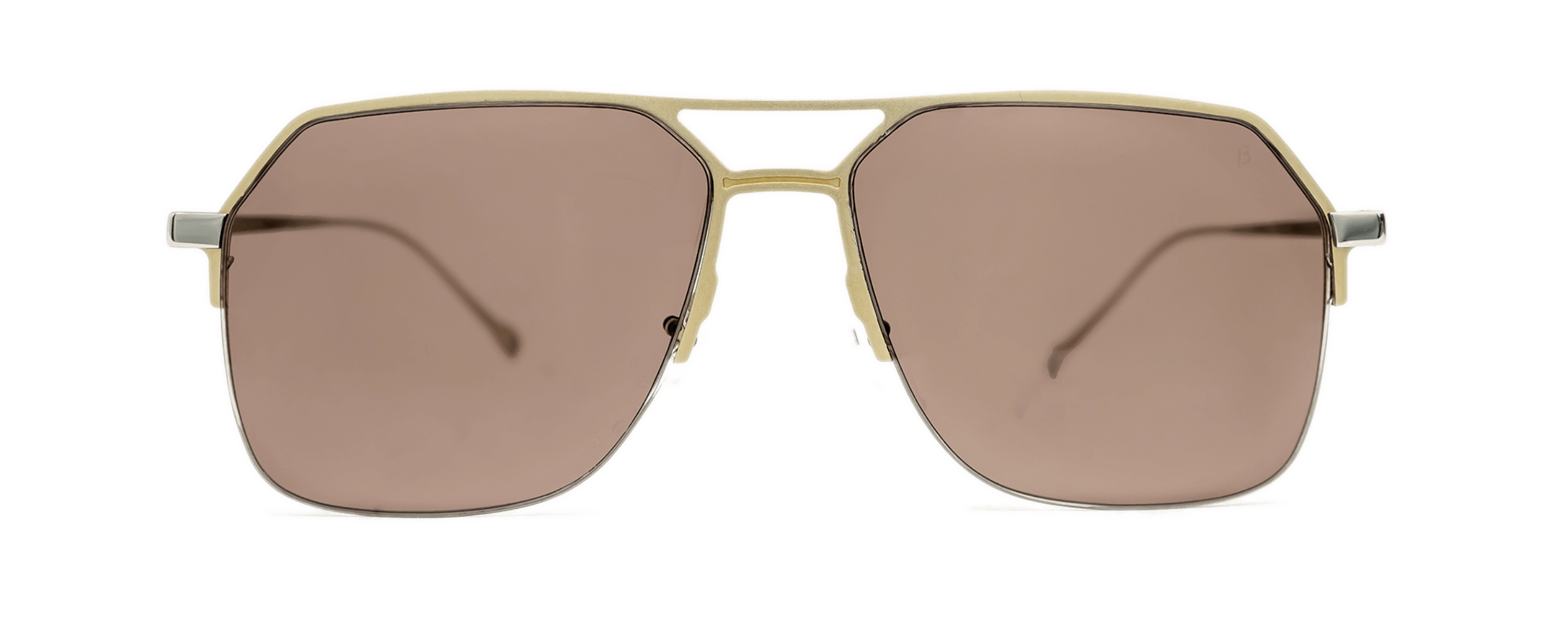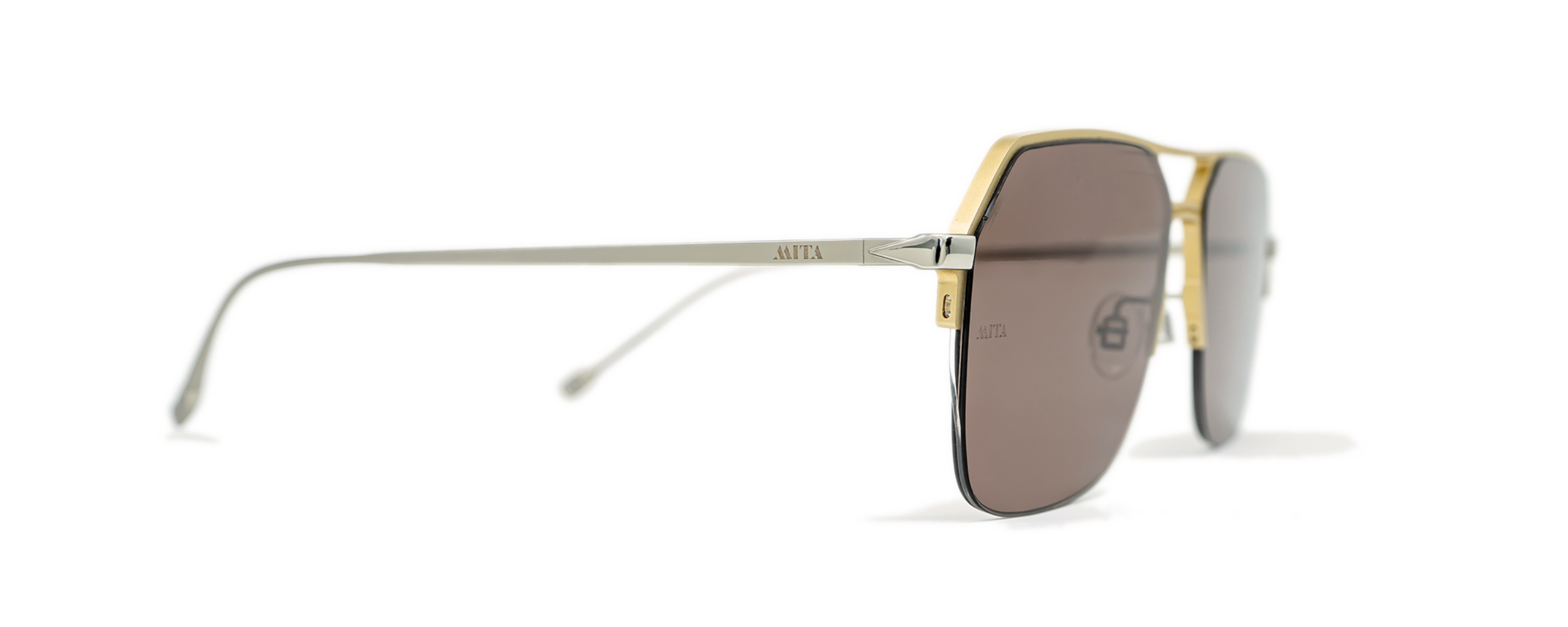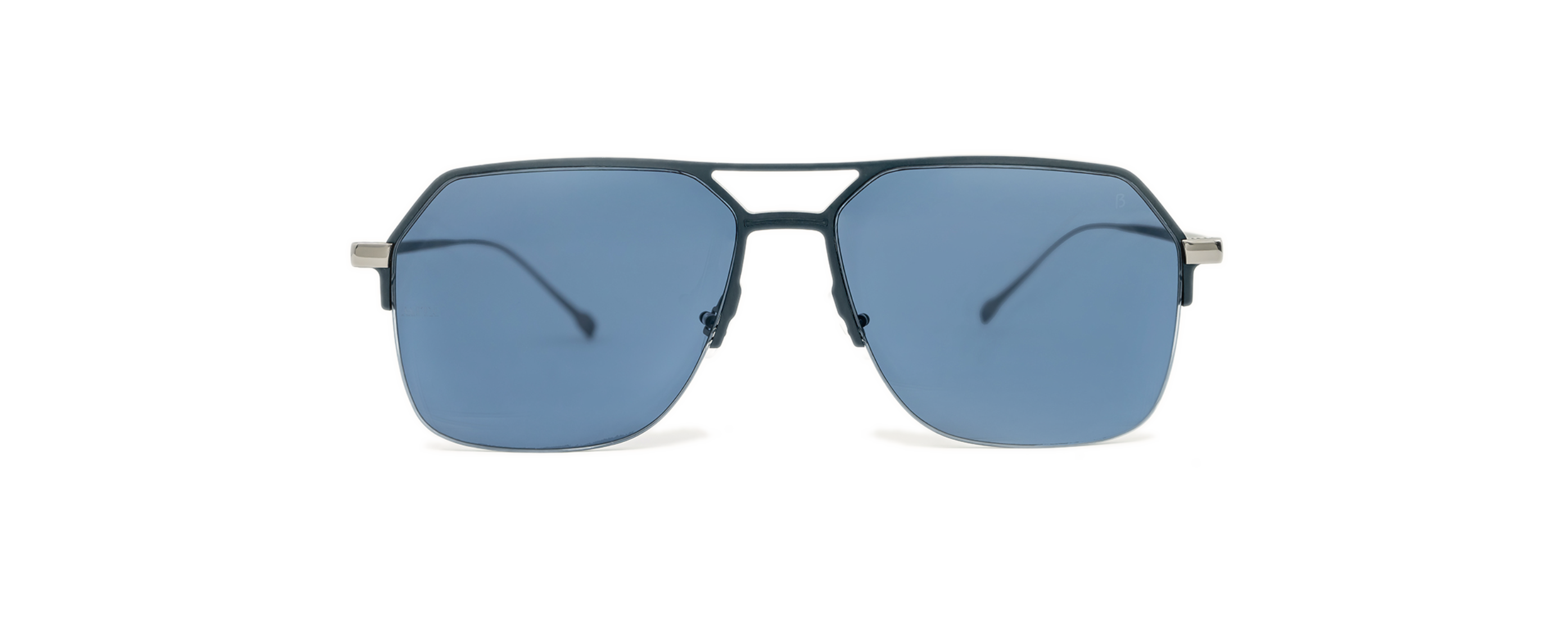 Stay stylish and comfortable with the Men's Aviator Sunglasses from MITA. Inspired by 70's oversized double bar navigators, these half rim metal sunglasses boast a semi-rimless construction for a modern touch. The iconic 'I' detail on the end pieces and sleek titanium temples add a touch of sophistication, while the weightless frames ensure comfort all day long.