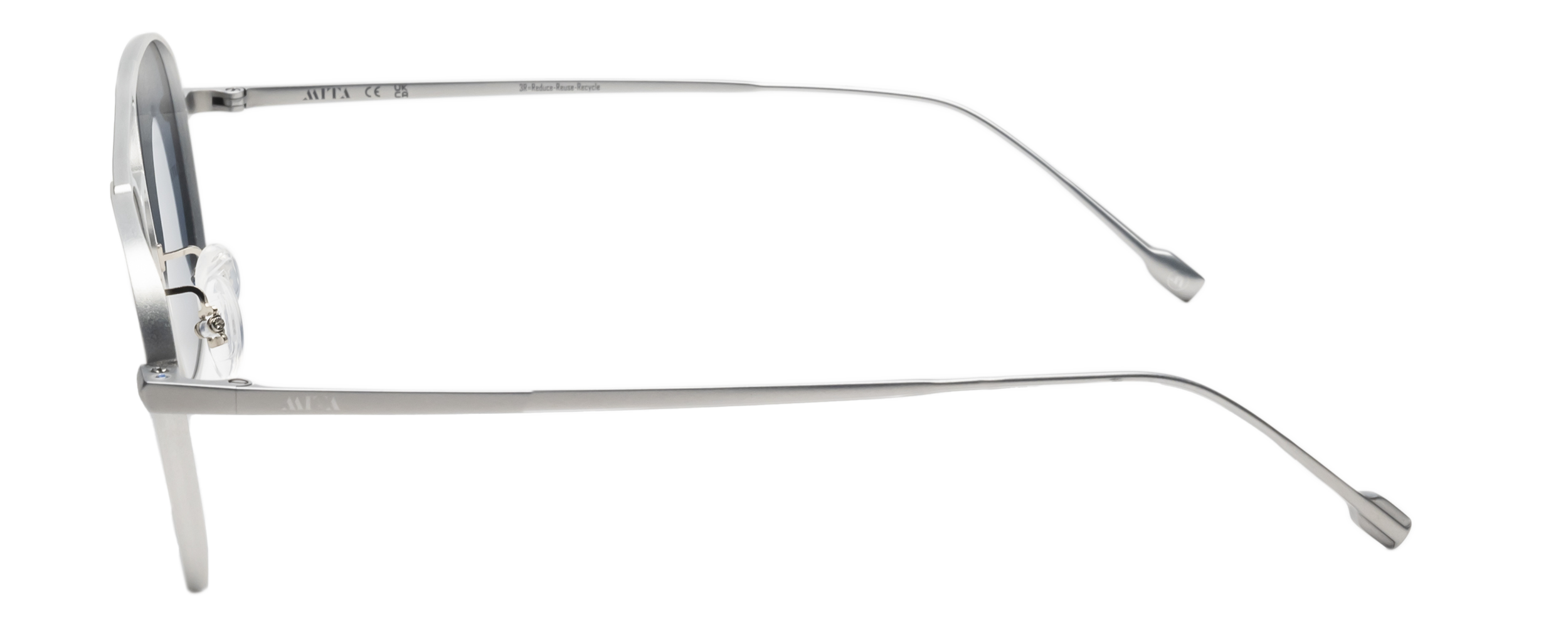 These sunglasses are made from recycled Aluminum and Titanium, with sustainable nose pads and 100% UVA/UVB protection sustainable lenses.
