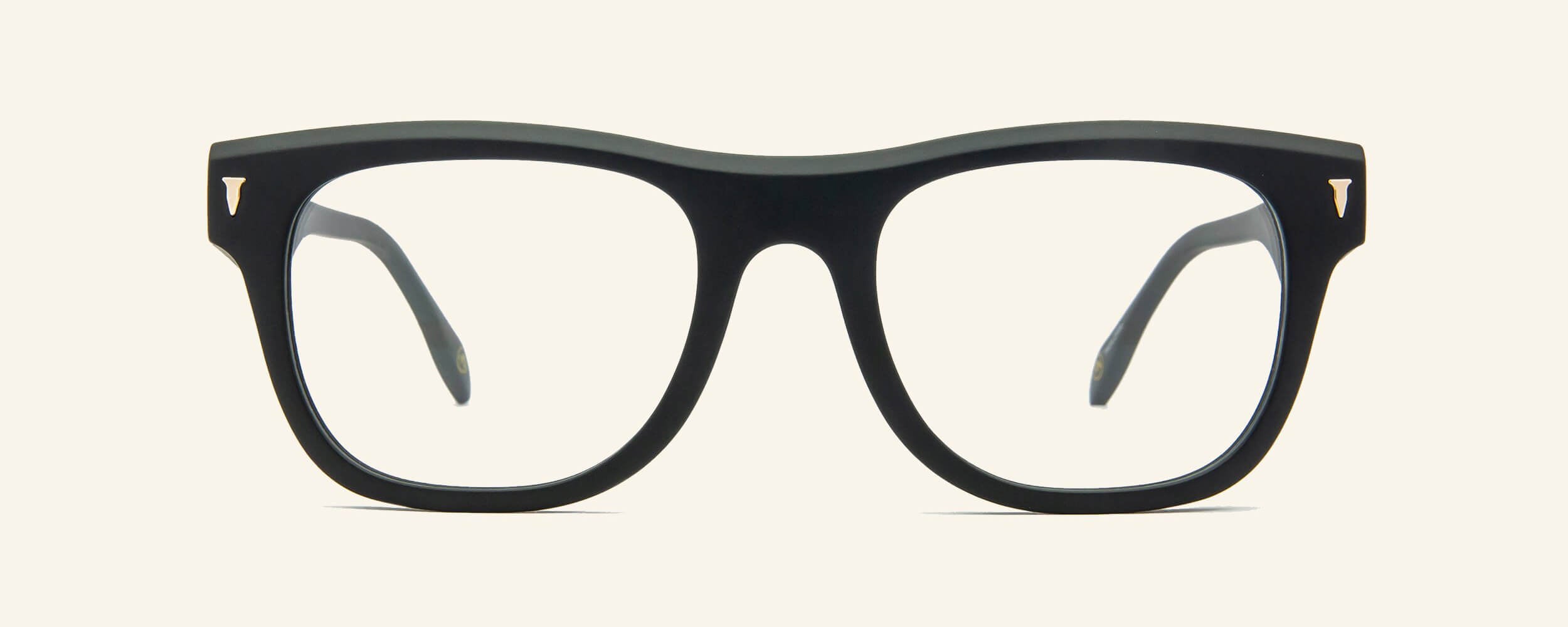 These matte black eyeglasses are made of recycled FDA approved water bottles, called rPET.