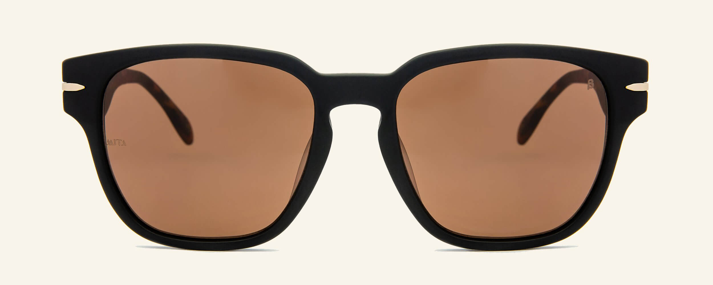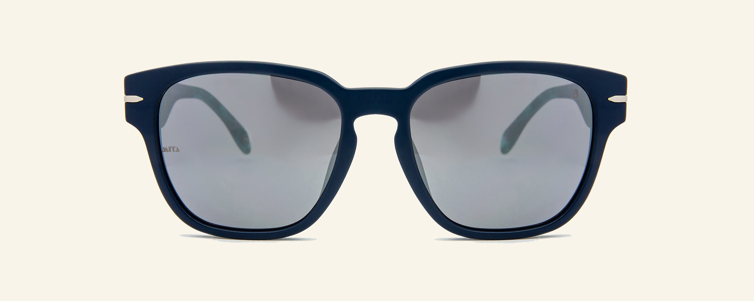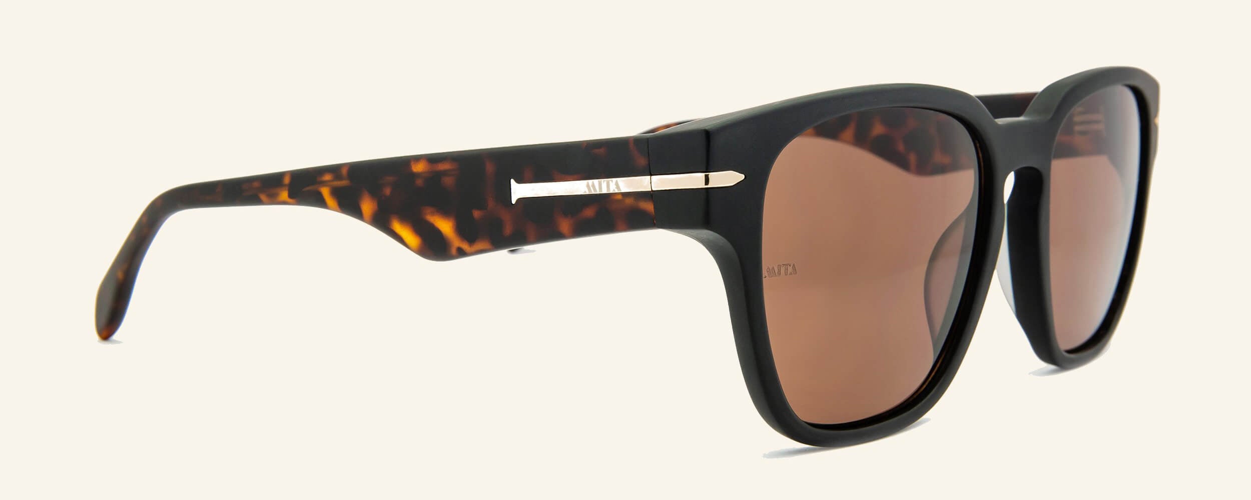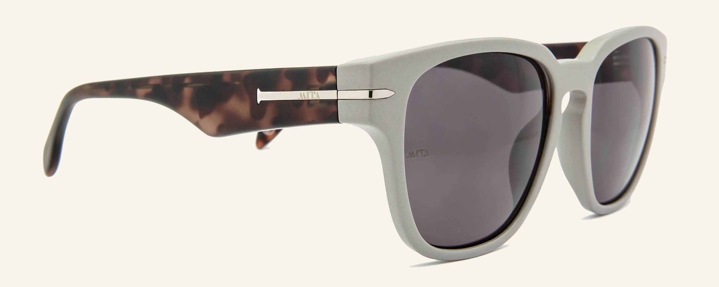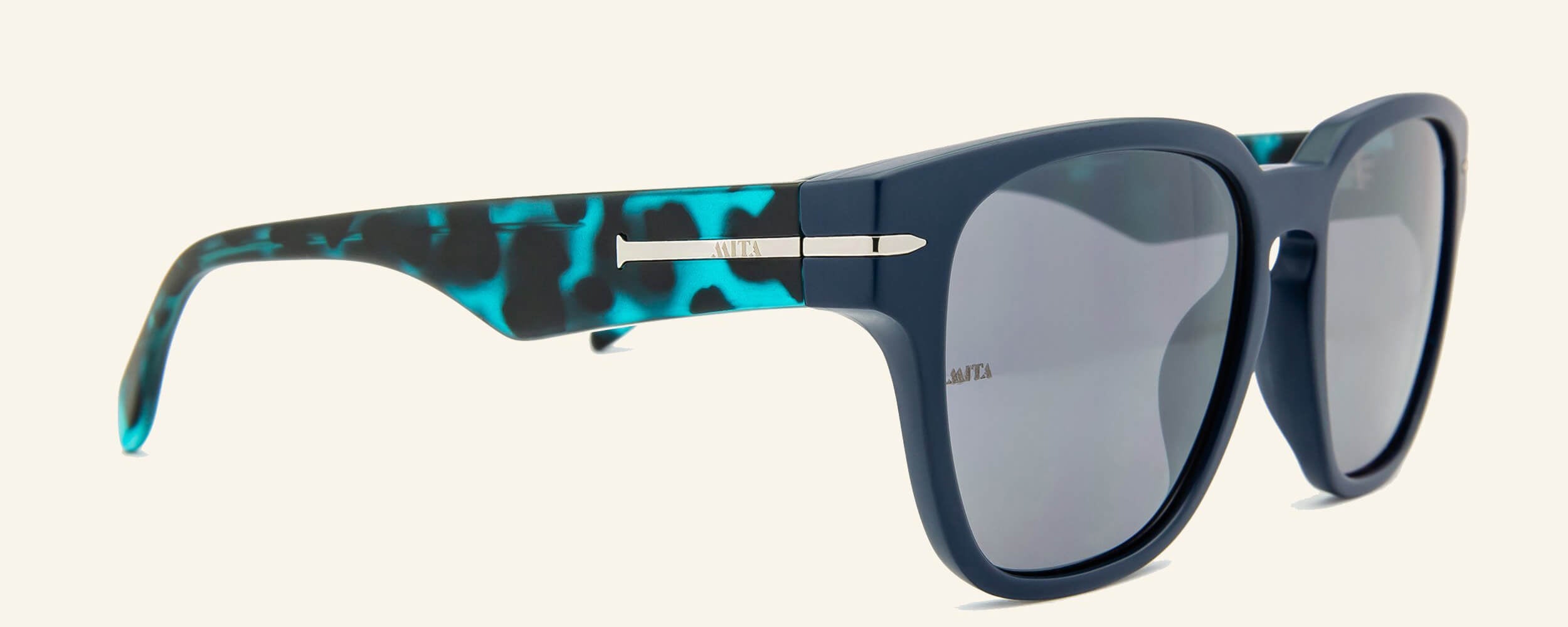 KEY WEST - A classic silhouette and cool keyhole bridge give this style a vintage vibe. This model is enhanced with MITA's iconic wrap-around metal detail and sustainable sun lenses. Made of recycled FDA-approved water bottles, called RPET. This model is RxAble.