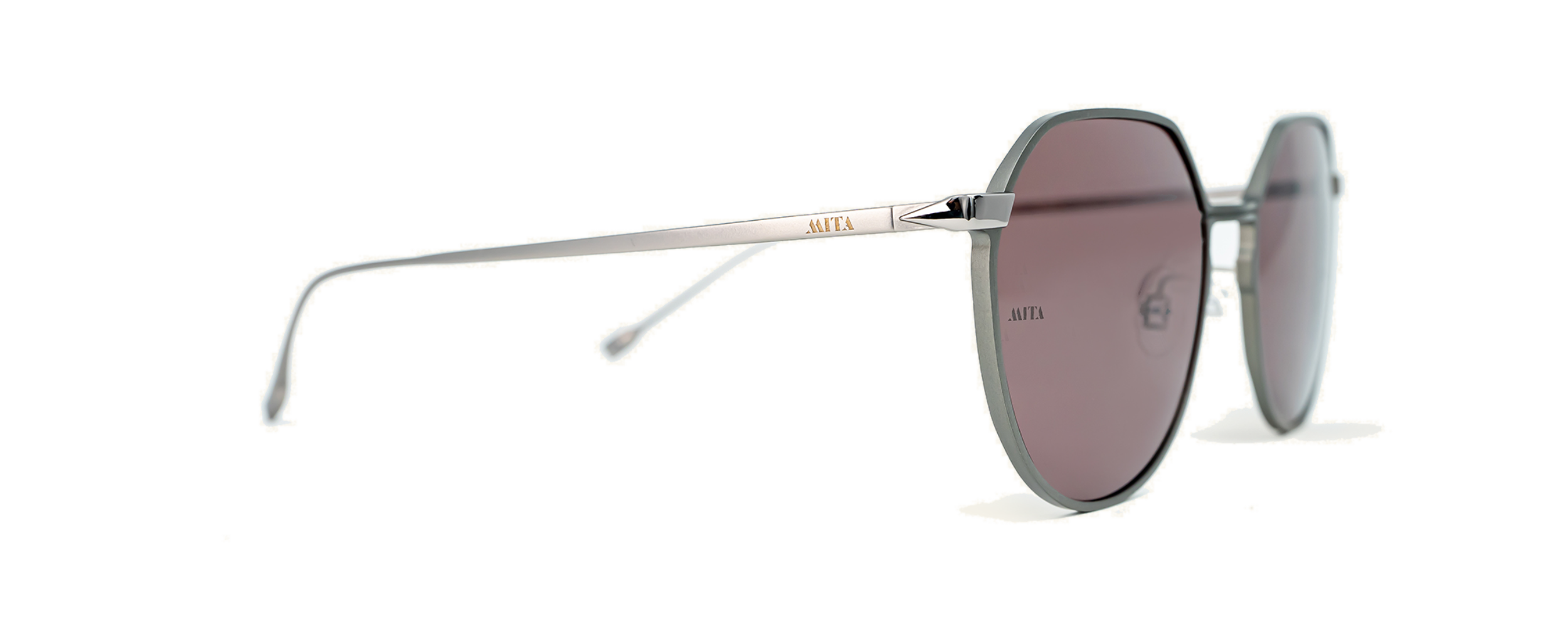 Las gafas de sol Roma con estructura metálica tienen una forma pantos modificada atemporal con el icónico detalle "I" de MITA en los extremos y elegantes patillas de titanio. Las gafas de sol Pantos se refieren a la perspectiva pantoscópica o de vista amplia. Con una combinación de forma redonda y ovalada para la lente, estas gafas de sol con estructura metálica tienen una bisagra alta para una máxima visibilidad. Estos anteojos son elegantes y sofisticados para darle estilo, visibilidad y cobertura.