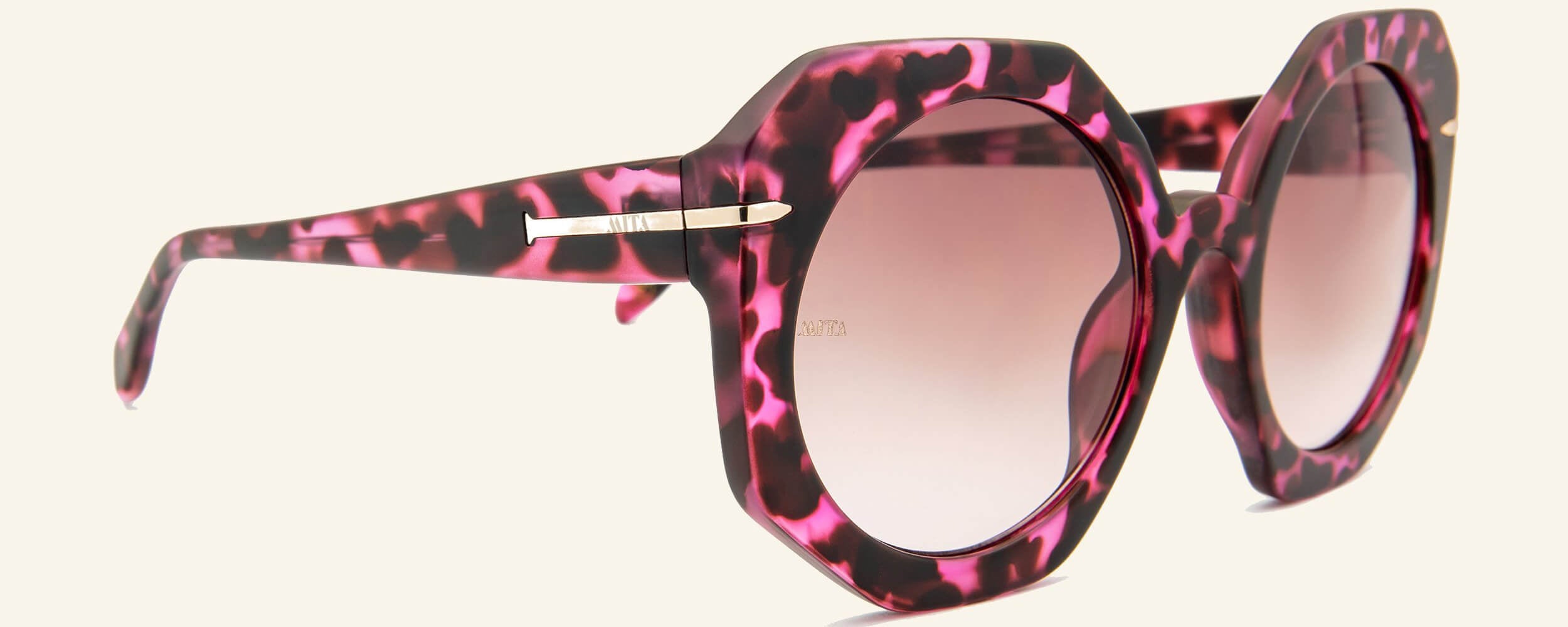 La suela está disponible en tres opciones de color diferentes, cada una con nuestro icónico detalle MITA "I". Para aquellos con un estilo atrevido, está el rosa mate, con marcos de carey rosa y lentes degradados de color ámbar. La opción clásica es elegir monturas en negro brillante para estas gafas de sol con lentes degradadas. O, si prefieres colores más naturales, elige nuestras monturas marrones mate con lentes verdes. Independientemente del estilo que elija, la silueta de la suela de gran tamaño combina una lente redonda con un marco angular para una apariencia de gran glamour.