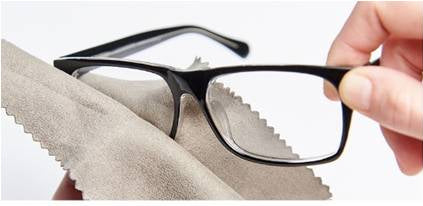 Keep the glasses away from household detergents and beauty products such as hairspray and perfume. These can damage lenses and coatings. Only apply a lotion-free cleaning solution on the frames. Please don't use any clothing to clean the glasses.