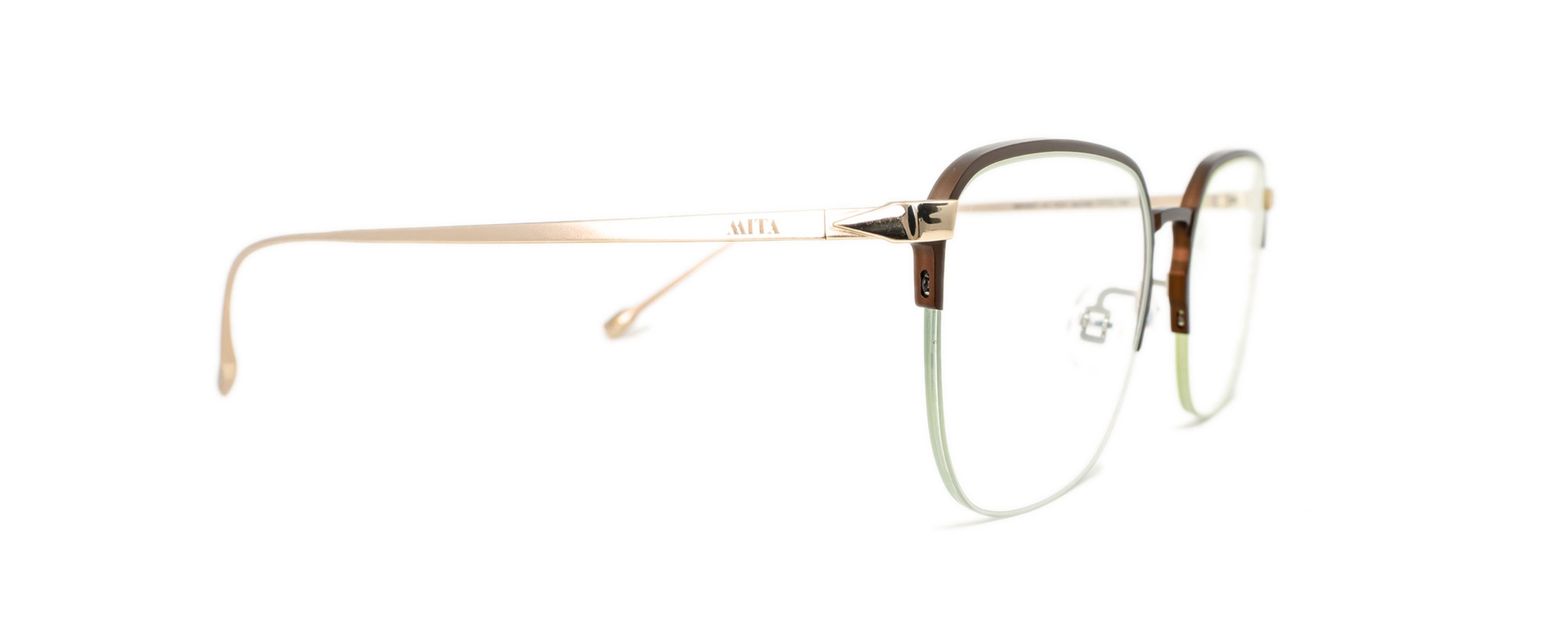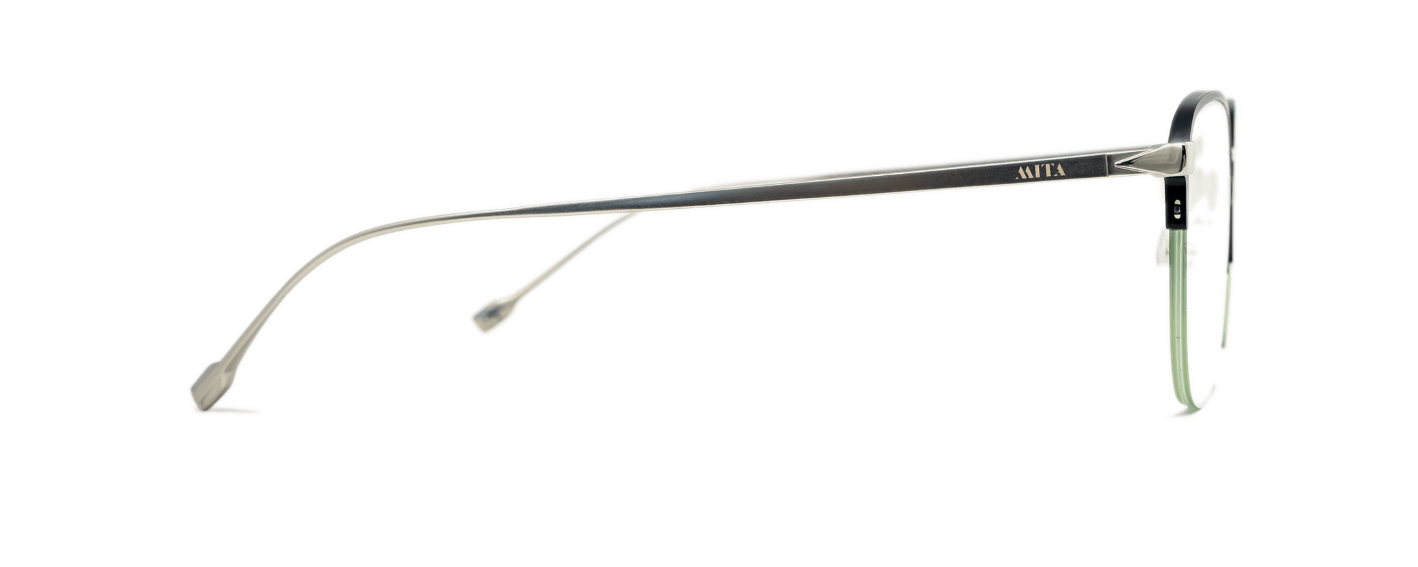 • MITA's iconic ‘I” detail on end pieces titanium temples