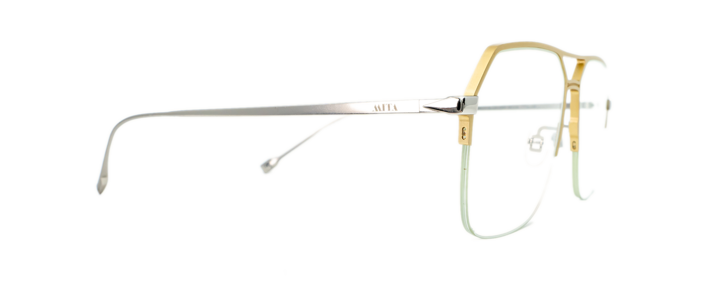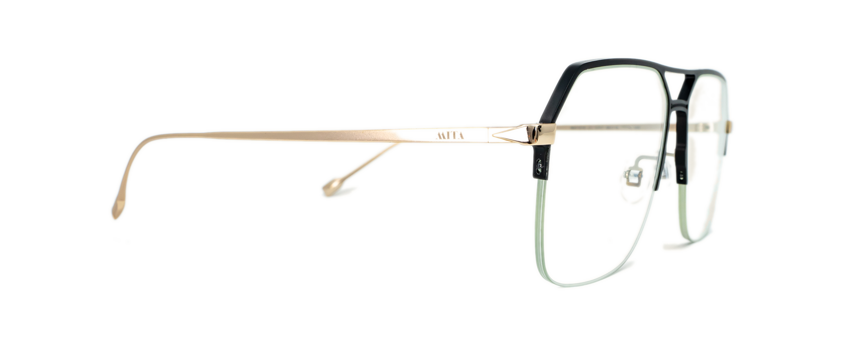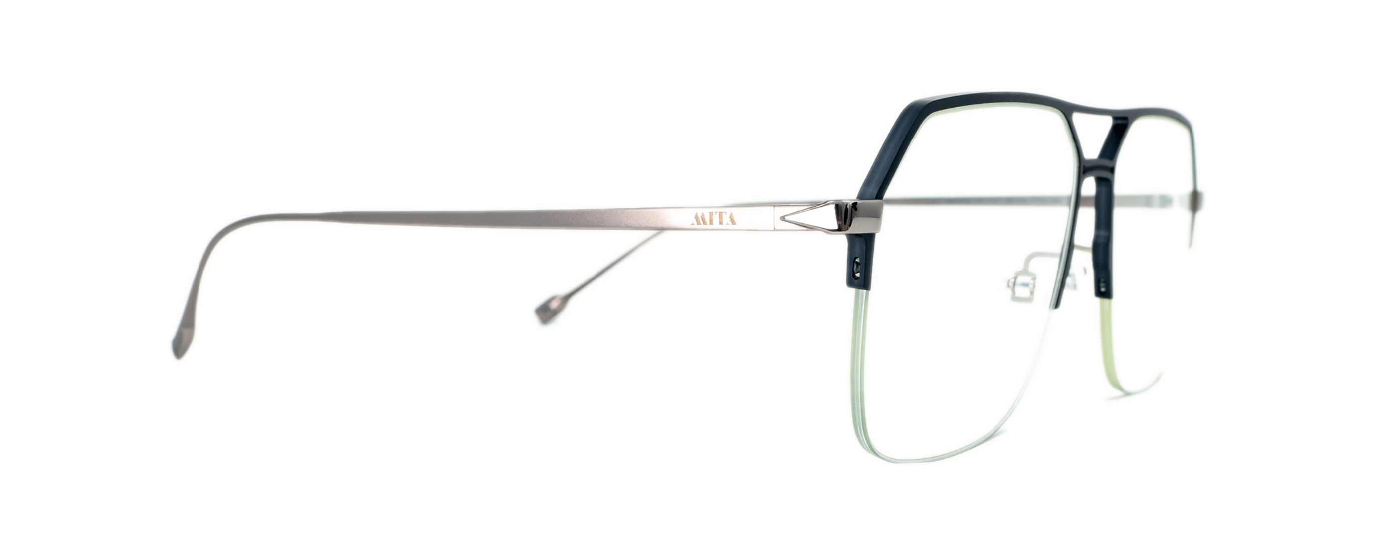 - MITA's iconic “I” detail on end pieces and titanium temples