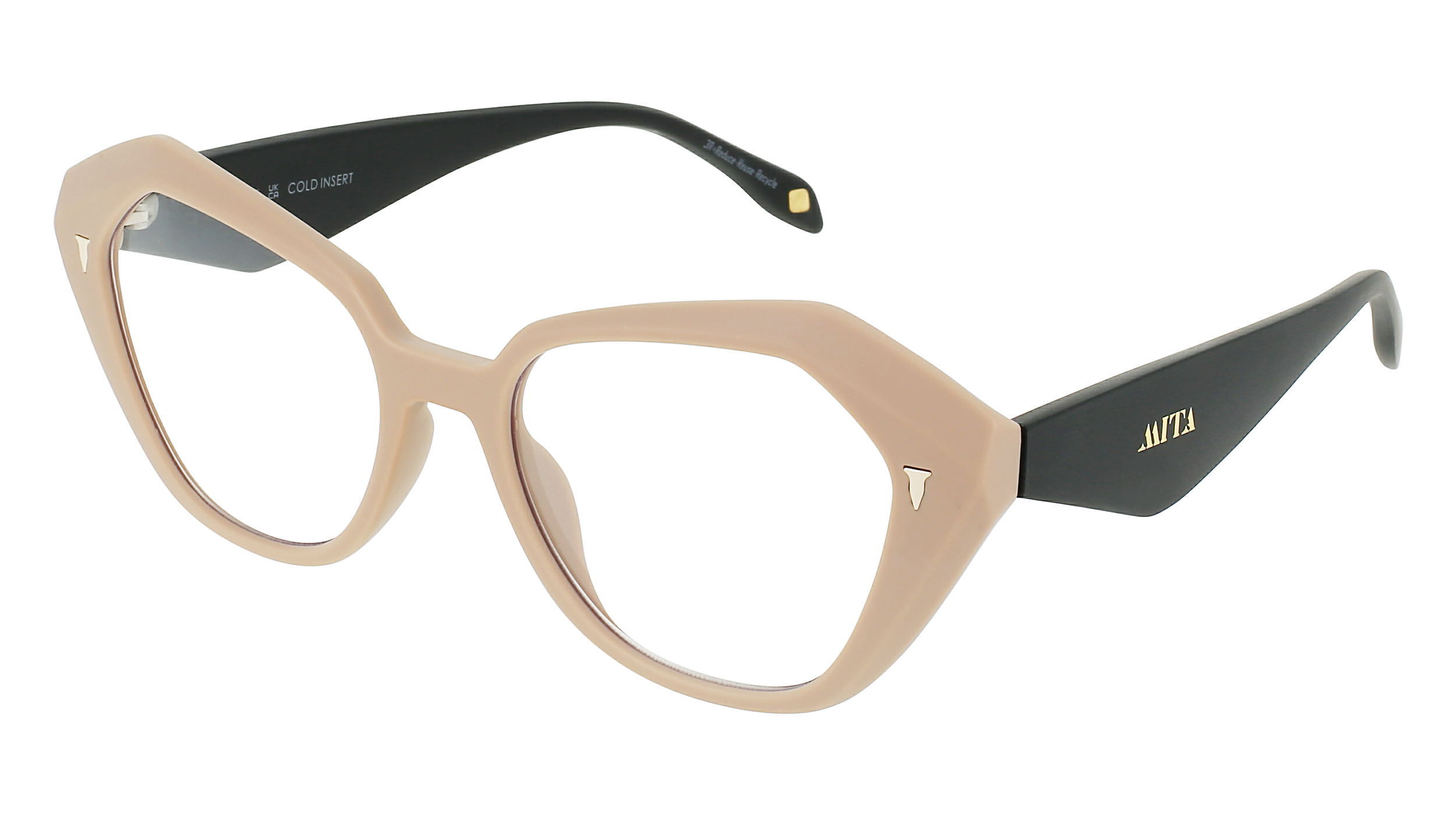 One look is all you need to fall for this sophisticated unique style. This sculpted structured model features a geometric shape, our newest temple design, and beveled edges enhanced by MITA's Iconic metal detail. Model MIO1033 is made with Recycled water bottles and comes with our blue-light-blocking lenses, protecting your eyes from harmful blue light and UV rays emitted from screens, digital devices, artificial lights, and the sun. Check out how these beautiful frames are styled by members of the MITA community here.